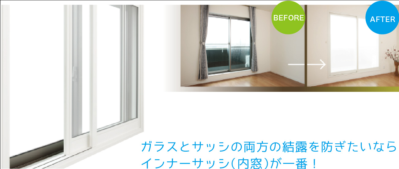 窓ガラスの結露を防ぐ方法として内窓と呼ばれるインナーサッシ(室内側にもうひとつ取り付ける窓)を取り付ける方法があります。