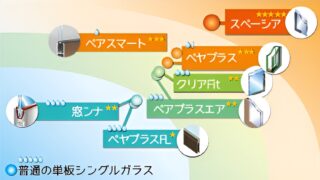 お部屋の断熱や結露対策の為にペアガラスに交換すると言っても、ペアガラスには多くの種類が あり、それぞれ用途や機能に大きな違いがあります。 酷い結露が発生しているのに、知らずに断熱能力の低いガラスを入れてしまっては効果は低いで すし、お金をかけて窓をリフォームした意味がなくなってしまいます。 そんな失敗をしない為に各メーカーが販売するペアガラスとスペーシアを含め、性能や目的など について3つの項目に分けて詳しく説明します。